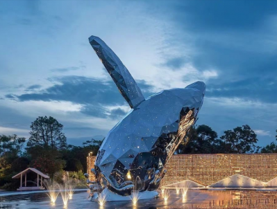 不锈钢块面鲸鱼,创意出水大鱼雕塑