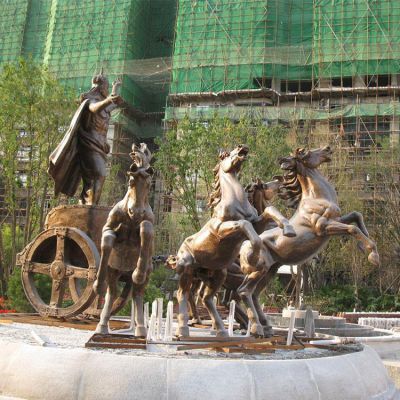 小区喷泉装饰玻璃钢仿铜欧式马拉车景观雕塑