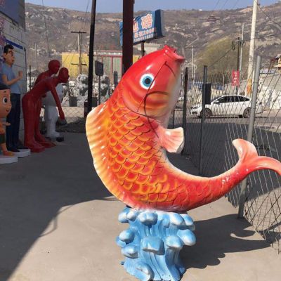 公园摆放的玻璃钢卡通鲤鱼雕塑