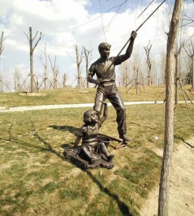 民俗小品玻璃钢仿铜钓鱼人物公园雕塑