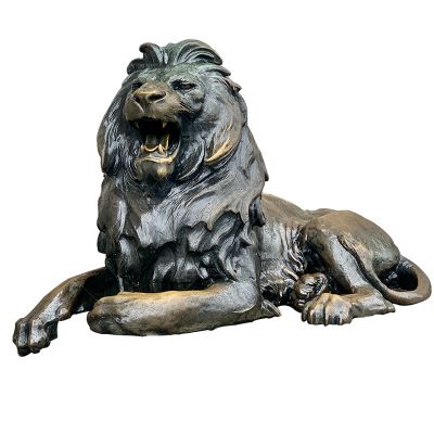 大型不锈钢仿铜仿古做旧一只趴着的狮子雕塑
