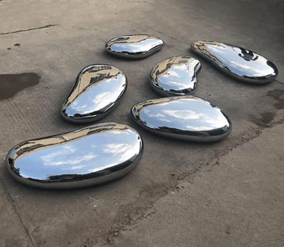 草坪不锈钢镜面抽象鹅卵石雕塑