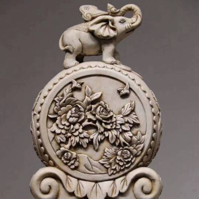 庭院别墅门口一对仿古做旧浮雕大象抱鼓石雕塑