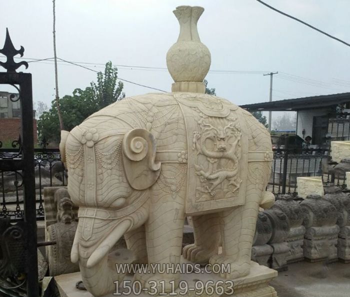| 产品标题 | 别墅小区大理石石雕背着花瓶的大象雕塑 |
