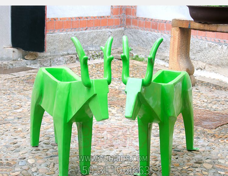 玻璃钢几何公园动物绿色鹿花盆雕塑