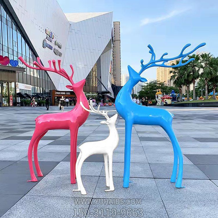 | 产品标题 | 园林广场玻璃钢彩绘园林动物景观抽象梅花鹿雕塑 |
