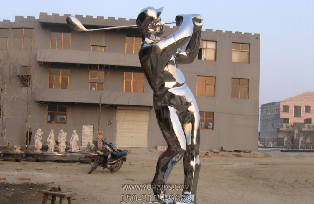 别墅园林抛光不锈钢打高尔夫球广场雕塑