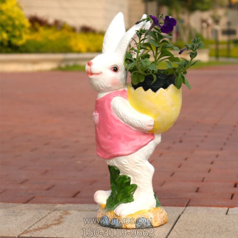 户外草坪玻璃钢背着花盆滴兔子雕塑
