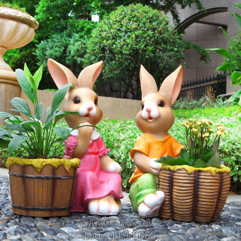 户外公园装饰品摆件玻璃钢彩绘兔子雕塑
