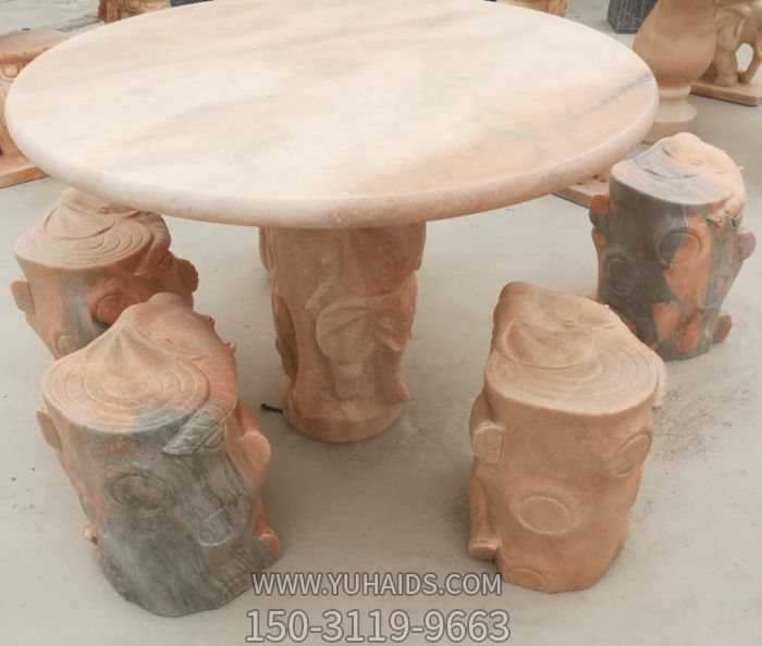 晚霞红仿木公园圆形桌凳石雕雕塑.详细说明