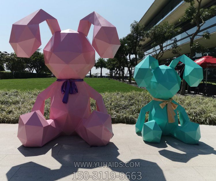 户外商店门口玻璃钢几何切面抽象坐姿兔子雕塑.详细说明