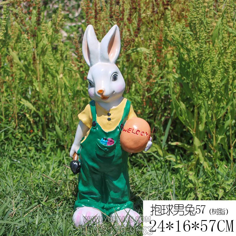 广场一只抱球男兔树脂彩绘兔子雕塑.图片展示