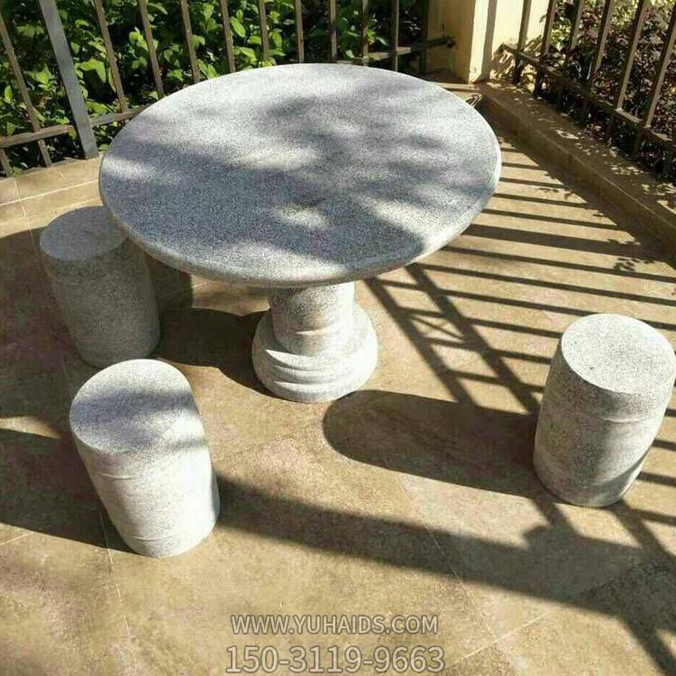 小区公园砂石石雕桌椅凳子雕塑.图片展示