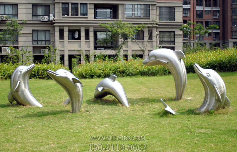 别墅一群跳动的不锈钢海豚雕塑.参数说明