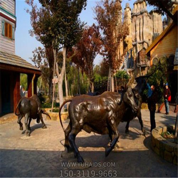 园林里摆放的形态各异的玻璃钢创意华尔街牛雕塑.参数说明