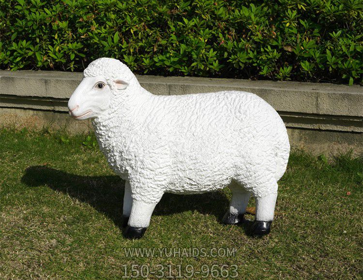 草地上摆放的 一只小的玻璃钢仿真绵羊雕塑.参数说明