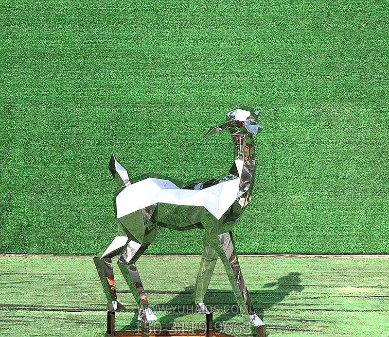 不锈钢几何镜面户外公园小型景观鹿雕塑.图片展示