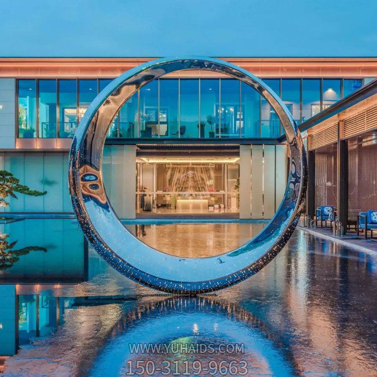 广场酒店不锈钢镜面创意圆环雕塑