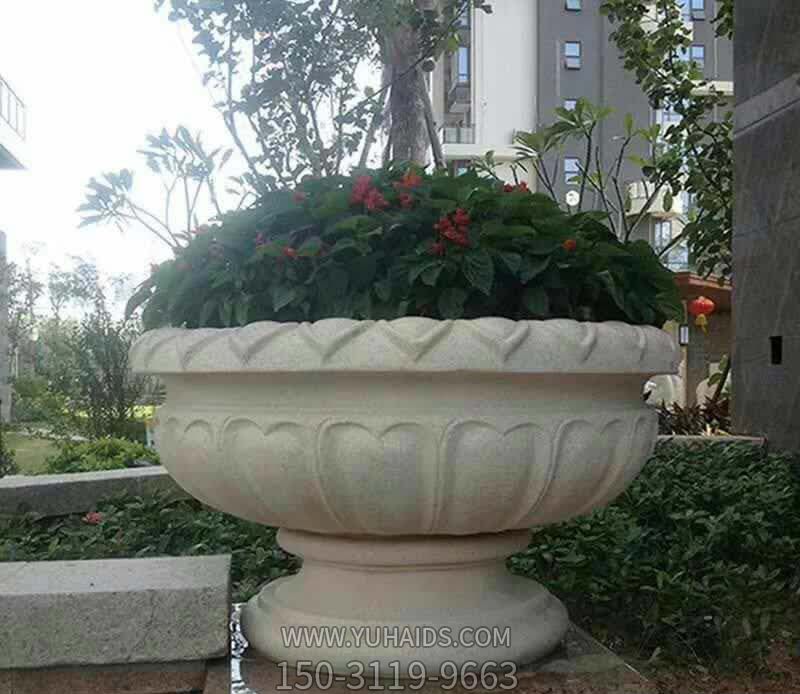 别墅街道大型大理石石雕花盆雕塑.详细说明