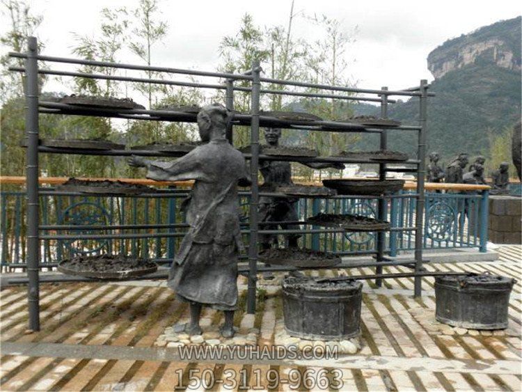 茶文化雕塑 户外大型仿真玻璃钢仿铜人物晒茶雕塑.图片展示
