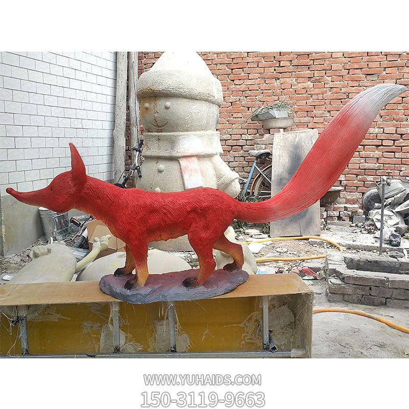 公园红色玻璃钢爬行的狐狸雕塑.详细说明