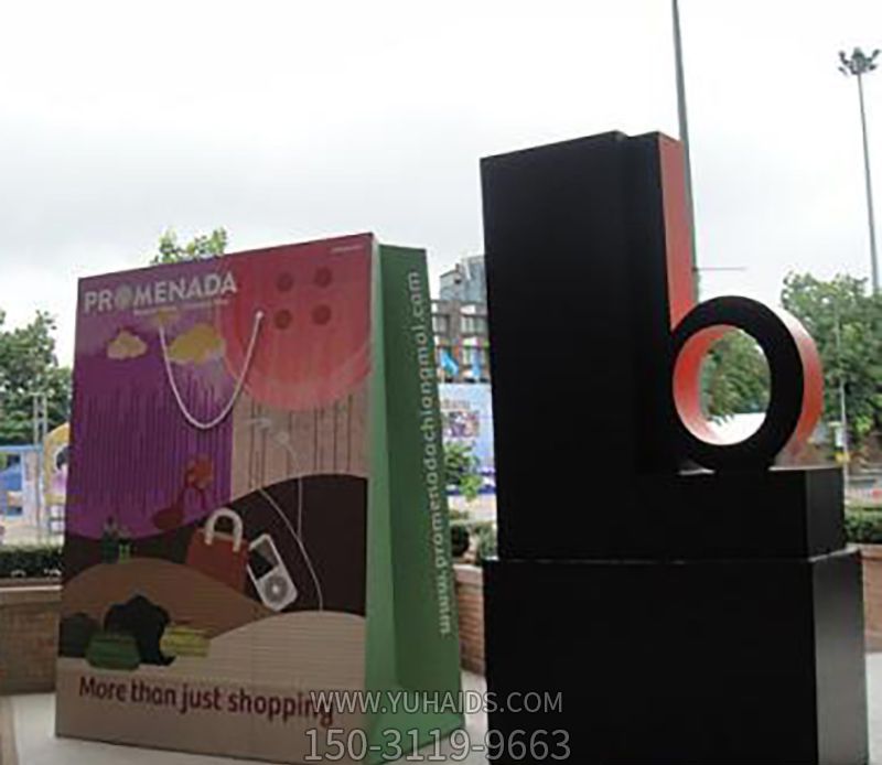 售楼部门口提示语标志玻璃钢购物袋雕塑.详细说明